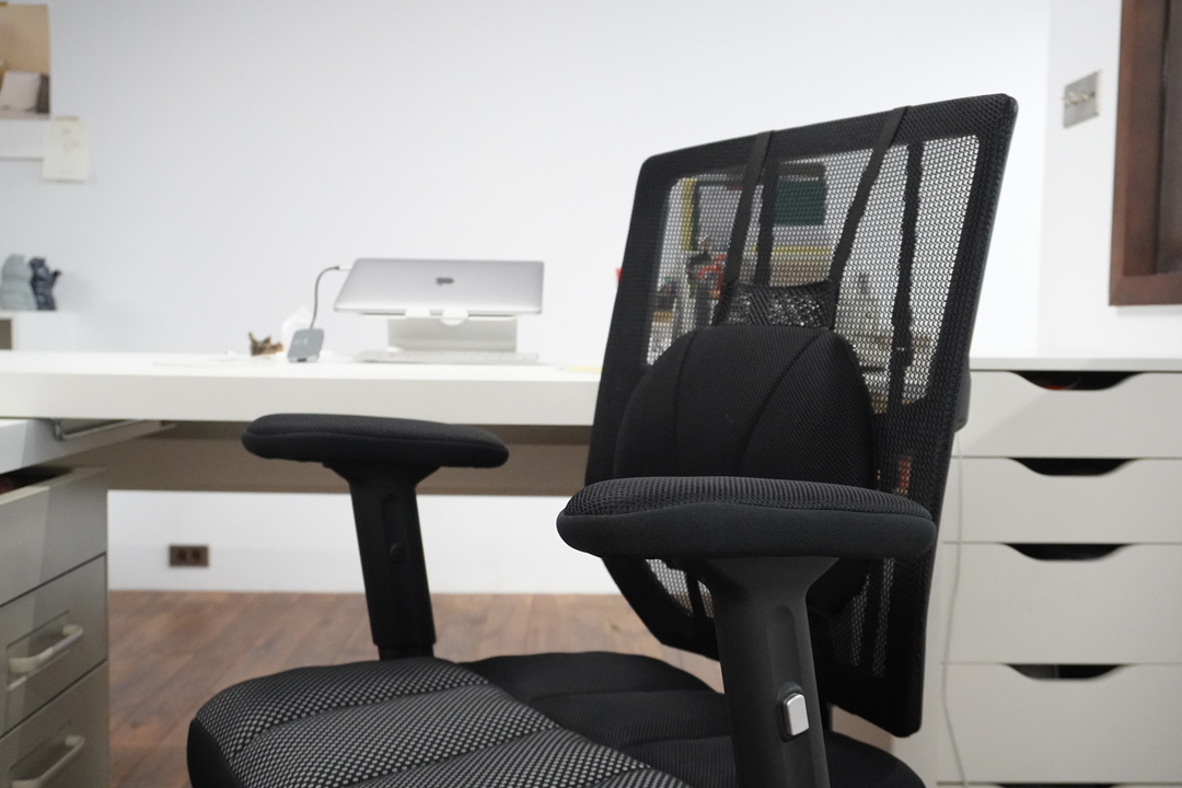 - 椅背添加枕腰靠墊,可調整支撐位置,填補腰椎間的空隙,長期使用預防駝背,減緩脊椎壓迫造成的肩頸痠痛。