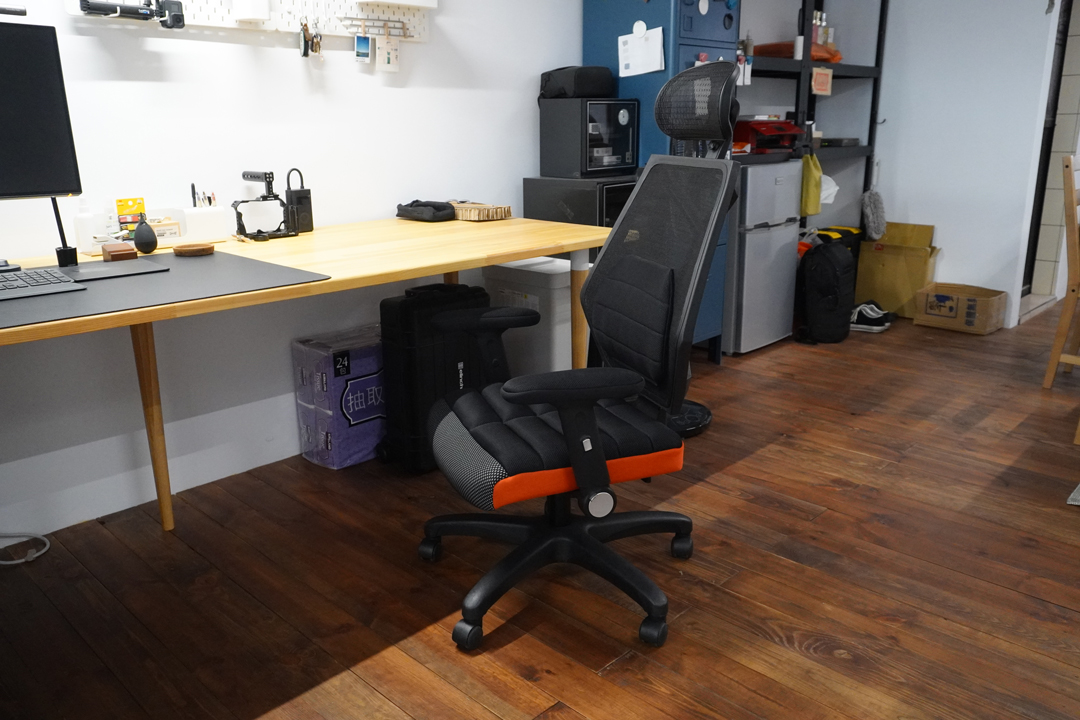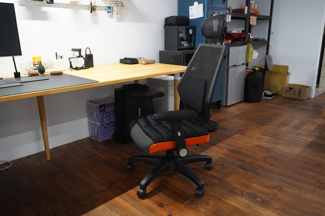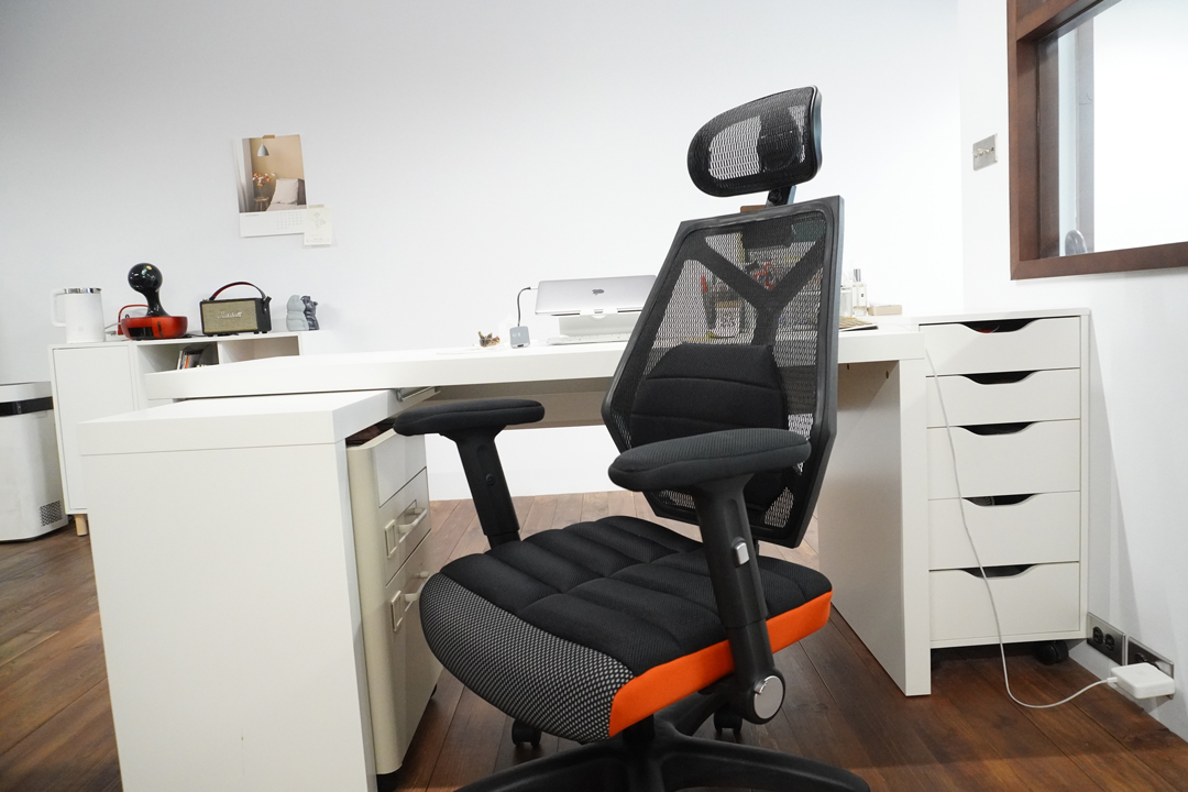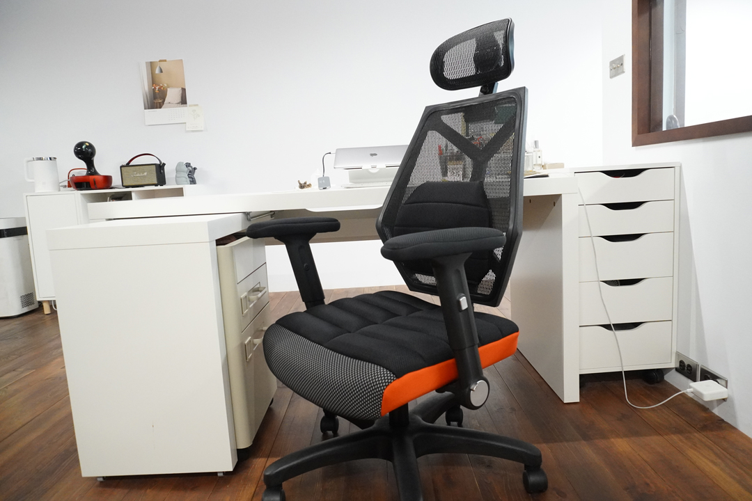 - 椅背添加枕腰靠墊,大面積填補腰部空缺,搭配高透氣性網布,組成了兼具安全、耐用及極度舒適的椅背結構。