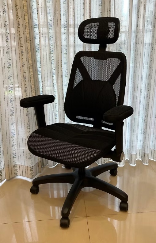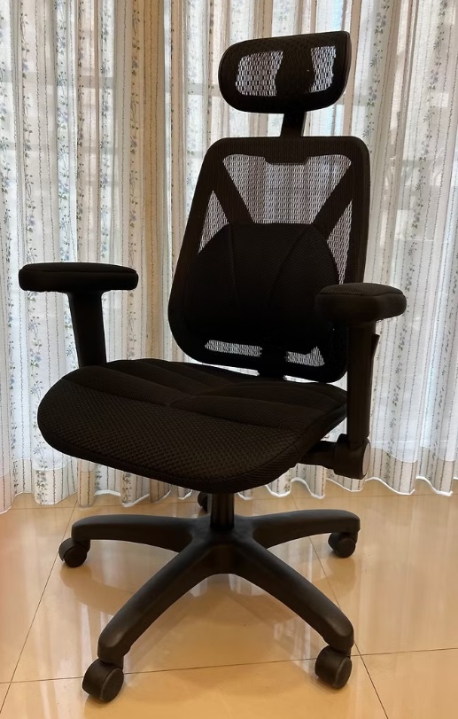 透氣網椅背 (可調整氣墊腰靠支撐高度)