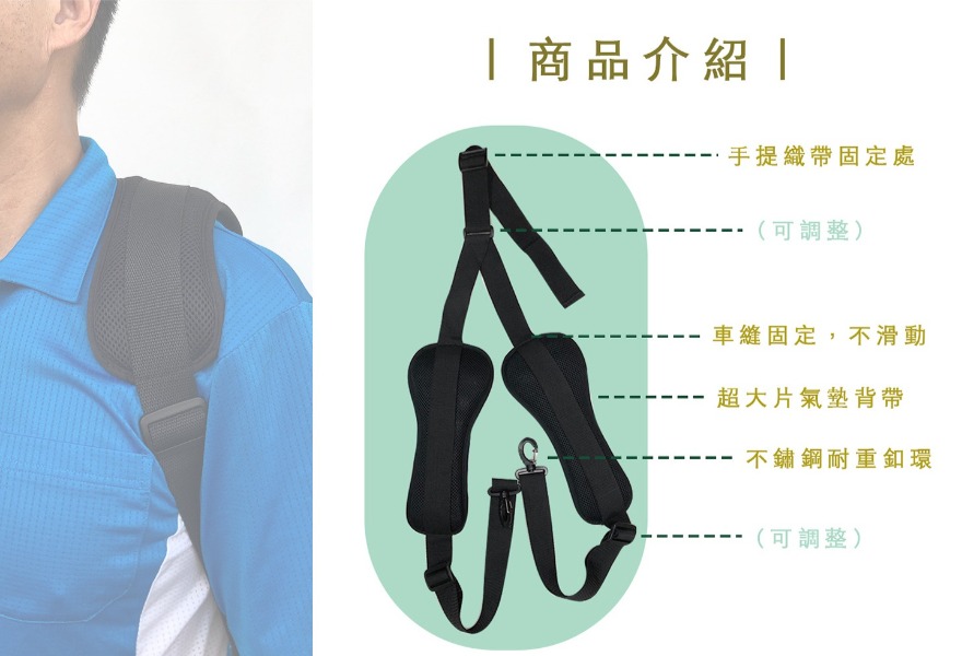 • 雙肩氣墊釋壓減重背帶-寬肩/AS-2001D