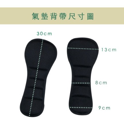 • 背帶內部:TPU大氣墊特殊造型設計,上下寬中間窄, 更加舒壓。